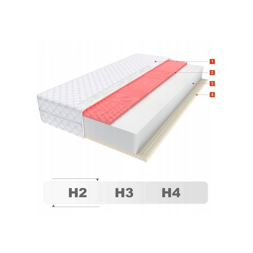 Alma: Látex 2 cm, Alta elasticidad HR espuma a 9 zonas 6 cm, espuma de poliuretano de 6 cm