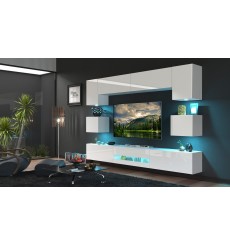 Ensemble meuble TV CONCEPT 1/HG/W/11-1B blanc brillant 256 cm