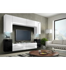 Ensemble meuble TV CONCEPT 6 noir/blanc brillant 256 cm