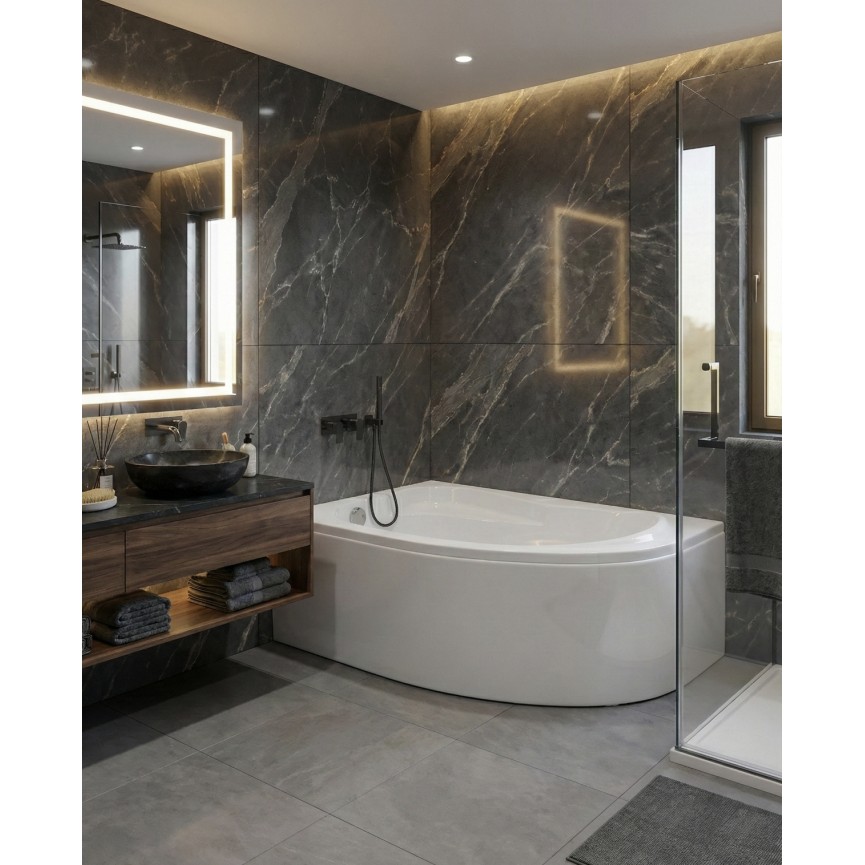 La baignoire Coline est un atout précieux pour qui souhaite transformer une salle de bains réduite en un lieu de détente. Sa forme asymétrique exploite intelligemment les angles, et son acrylique 6 mm assure confort thermique et résistance. L’ajout du siphon et du tablier facilite la pose sans accessoires supplémentaires.