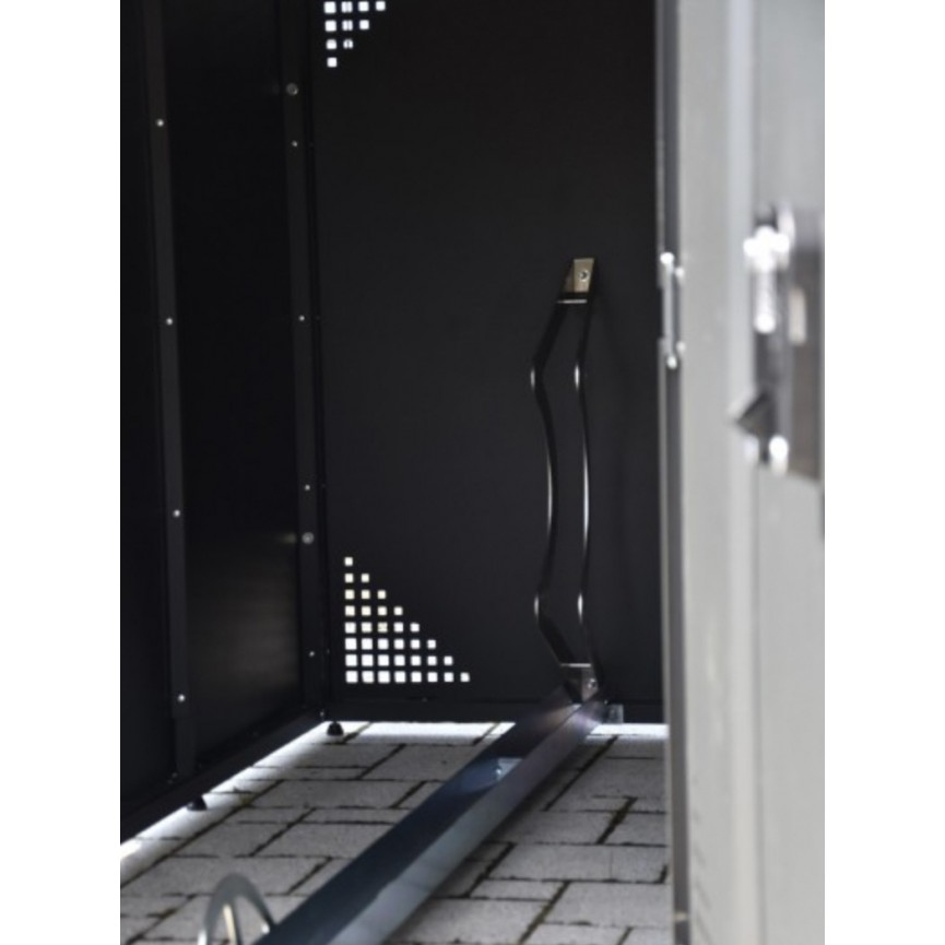 Une serrure à 3 points et un rail intérieur assurent la stabilité et la protection du vélo.