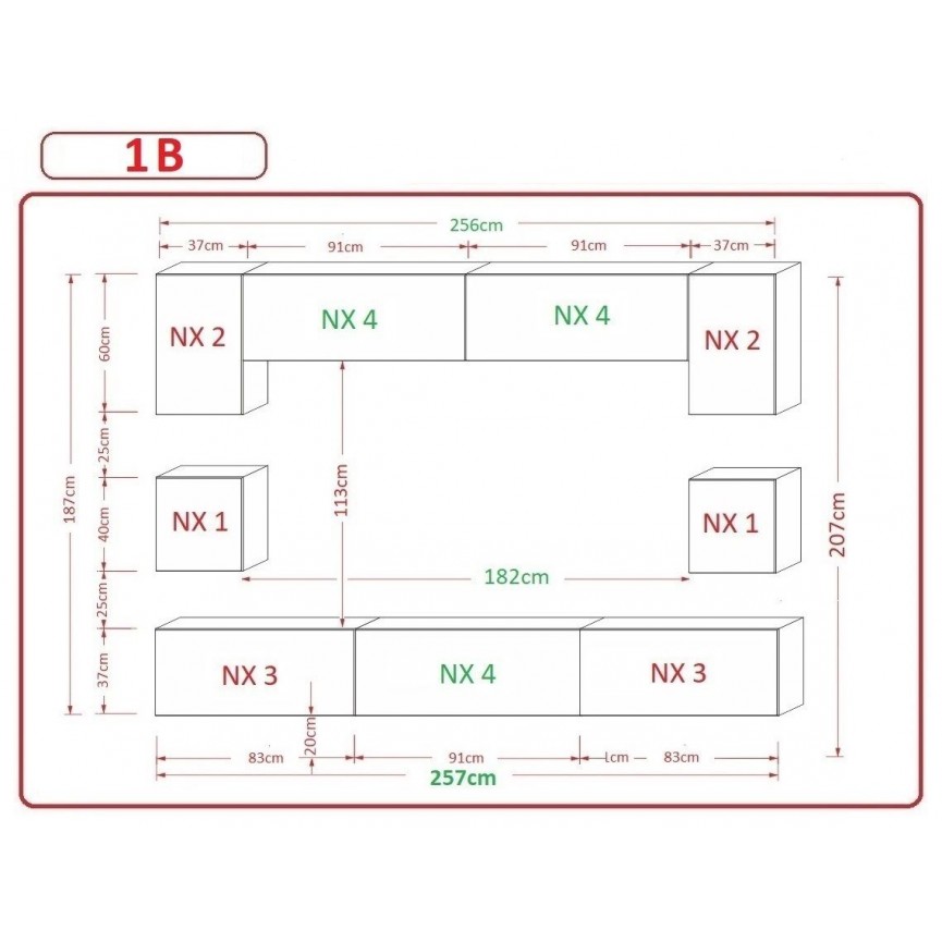 - Ensemble meuble TV: 257 x 35 x 206 cm