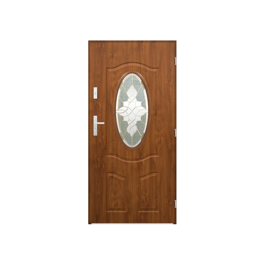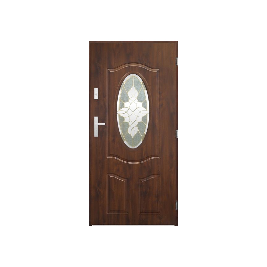 L'ouvrant est équipée de 3 goupilles anti-levier. Le cadre de la porte est constitué de profilés en acier galvanisé recouverts d'un stratifié ressemblant au bois.