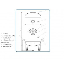 Serbatoio orizzontale zincato per acqua 150L 6 bar con accessori