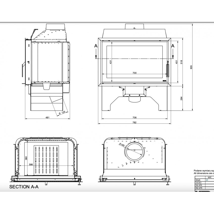 - Diametro della canna fumaria interna/esterna: 180 / 200 mm