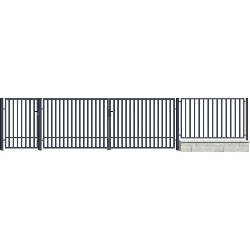 SALVADOR è un cancello moderno dalla struttura semplice .La recinzione è stata verniciata in antracite e decorata con una struttura delicata, creando un insieme estremamente elegante. Ilprodotto è protetto dalla corrosione mediante zincatura e ha un'elevata resistenza agli agenti atmosferici e allo sbiadimento .