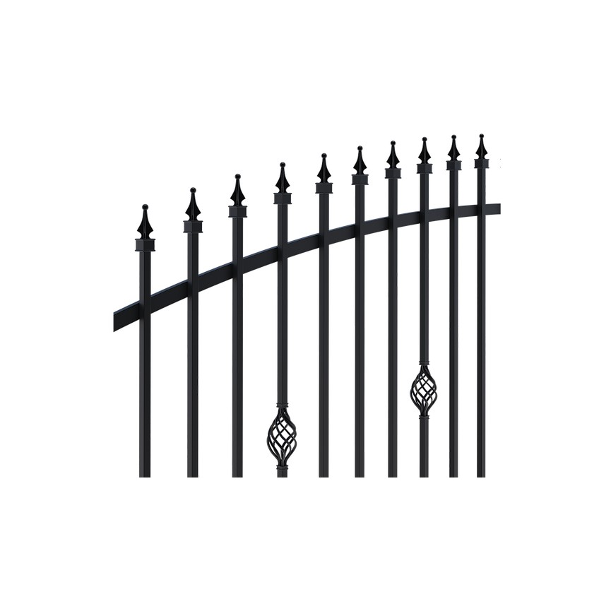 FLORA 3 è un cancello in cui l'elemento decorativo è integrato da piccoli coni che gli conferiscono leggerezza e, con una barra superiore ad arco, crea una composizione coerente in stile classico. FLORA 3 è adatto alla maggior parte delle case e aumenta il prestigio della proprietà .