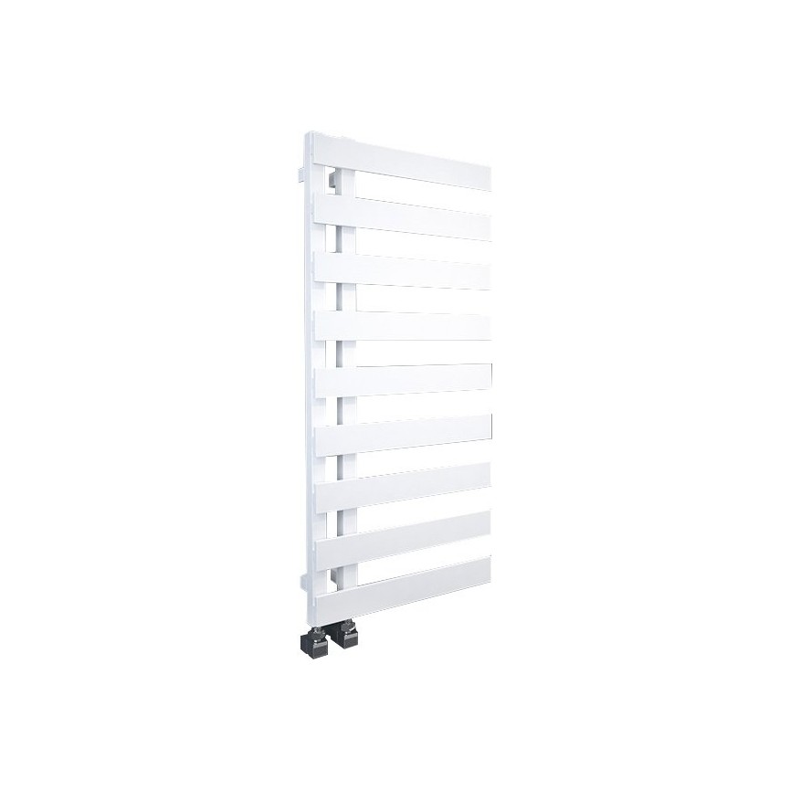 radiatore con struttura asimmetrica. Il design si basa su angoli retti, sia nella costruzione delle lamelle radianti orizzontali di questo modello, sia nel loro posizionamento rispetto alla guida verticale. Il modello è disponibile nelle seguenti misure: 500/800 [mm]Sul radiatore può essere montato un riscaldatore elettrico.
