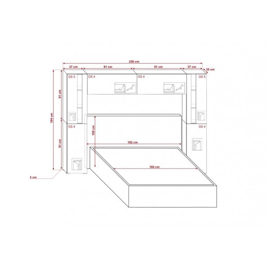 • Tête de lit PANAMA 8/21B/HG1-1A noir/noir brillant 256x184x35cm