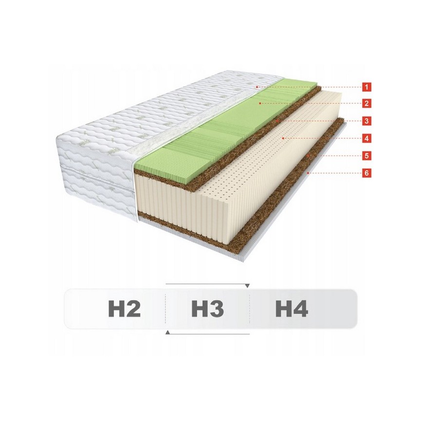 2. 3 cm latex Clima perforé et alvéolé quatre fois que le latex habituel garantissant une excellente circulation de l’air, rendant votre matelas respirant, ce matériau s’ajuste également à la forme du corps, fournissant un support orthopédique et régulant la température pendant le sommeil. Il est extrêmement durable et fortement hypoallergénique.