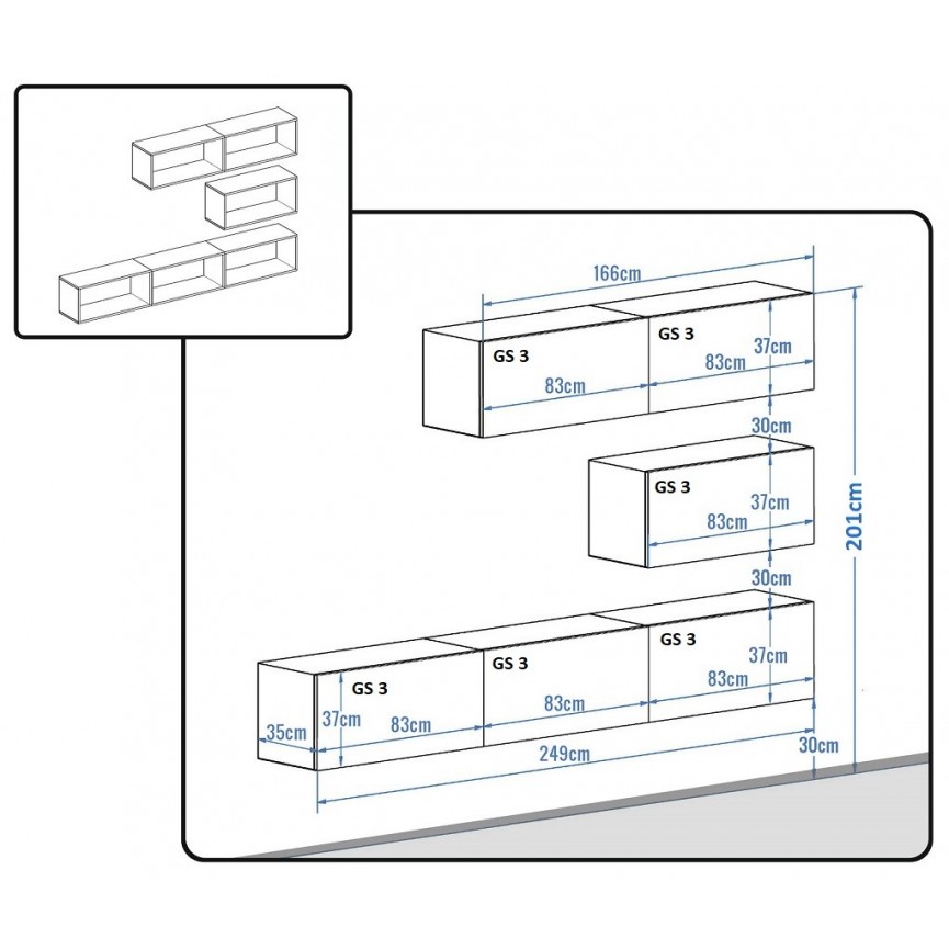 - Unidade de TV: 166-249 x 35 x 191 cm