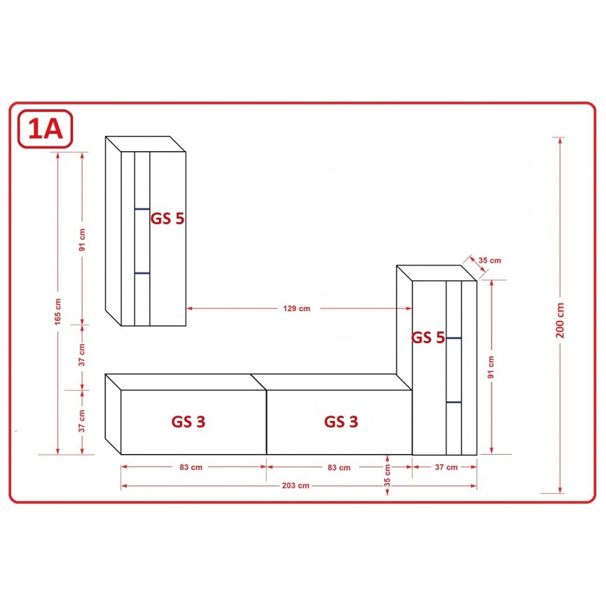 - Unidade de TV: 203 x 35 x 165-200 cm