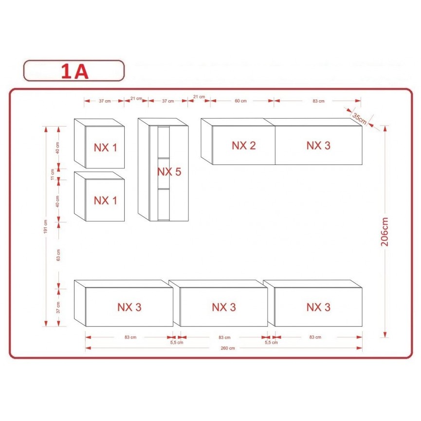 - Móvel TV: 260 x 35 x 206 cm